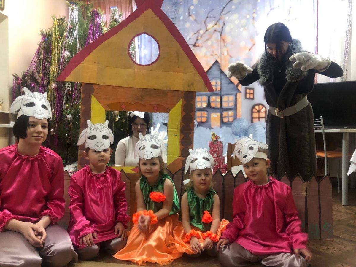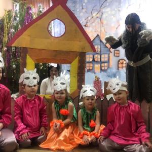 В гостях были сказочные герои из сказки "Волк и семеро козлят", игры, пляски, побывали все мы в сказке. Ёлку мы благодарили, ей «спасибо» говорили".