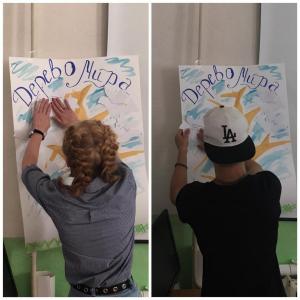 Все фотоальбомыВ рамках Дня солидарности в учреждении прошло мероприятие "Скажем терроризму" нет! ", которое провела воспитатель Михайловна А. В. На занятии дети вспомнили о теракте в Беслане, посмотрели отрывок из фильма, вспомнили о поведении в случае теракта, затем на изготовленном бумажном голубе написали, как можно улучшить мир и заполнили дерево мира.